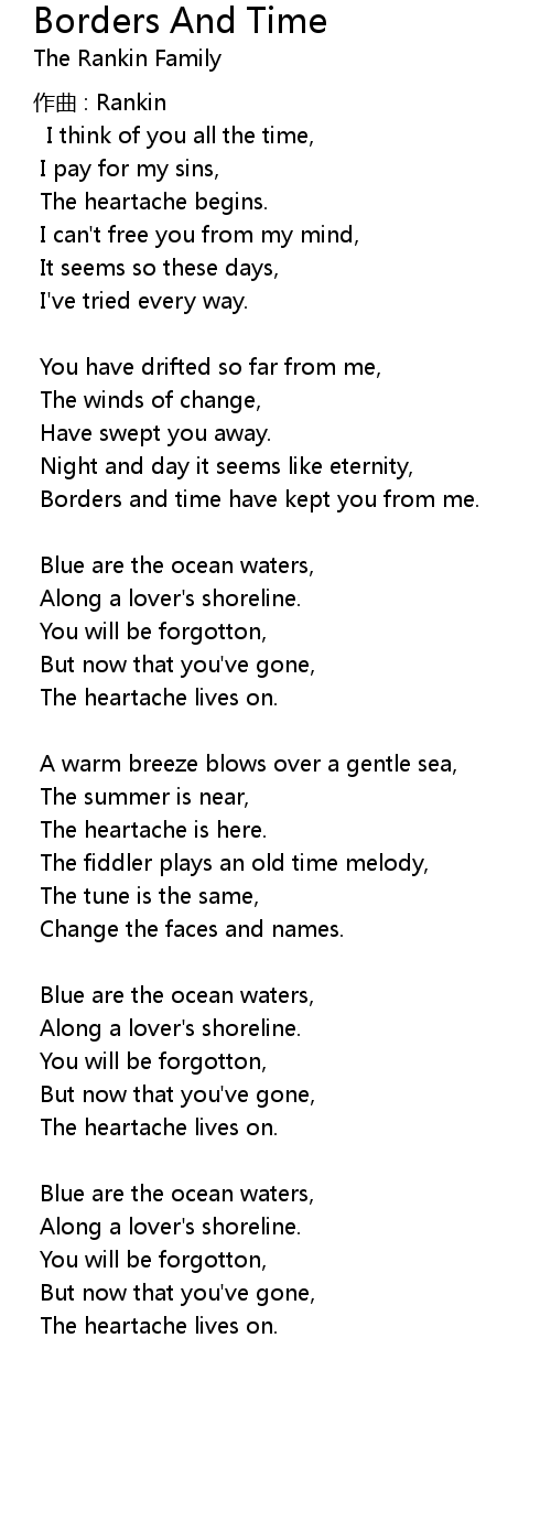 | Borders and time have kept you from me. | |