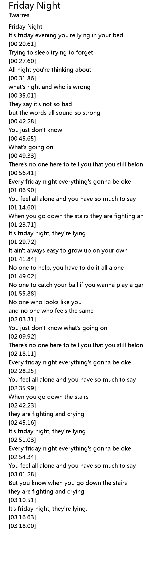 | [02:24.48] | Every friday night everything's gonna be oke |