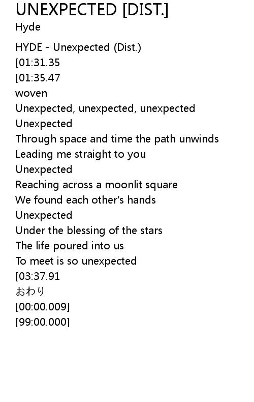 | [01:49.41] | Unexpected, unexpected, unexpected |