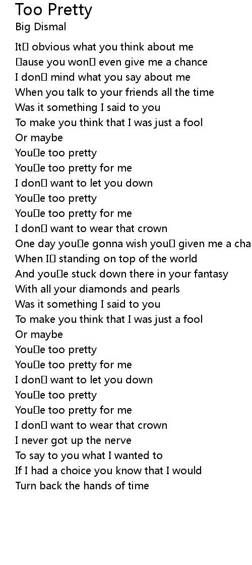 | Song | Too Pretty |