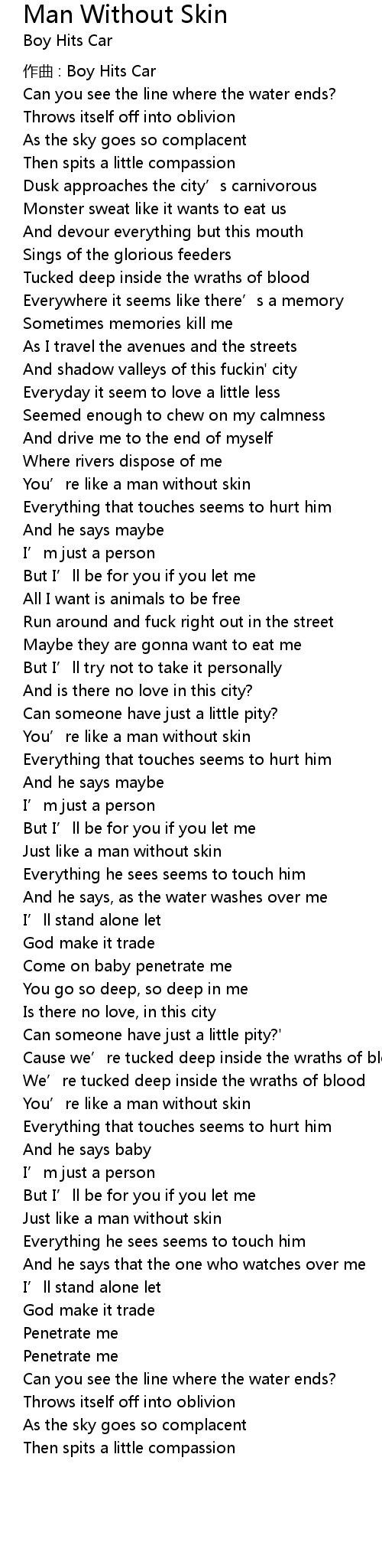| Just like a man without skin | |
