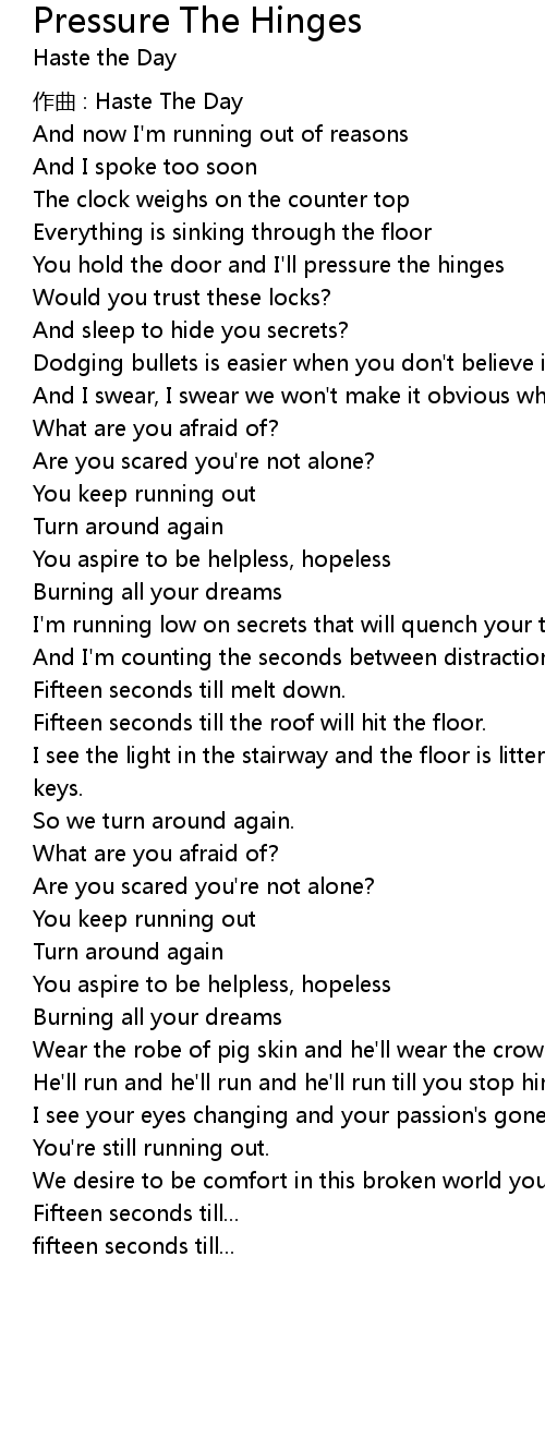 | I' m running low on secrets that will quench your thirsty ears. | |