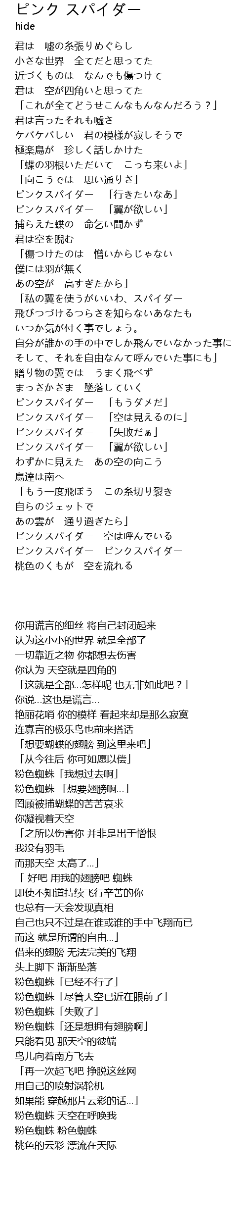 | [02:40.95] | ピンクスパイダー 「翼が欲しい」 |