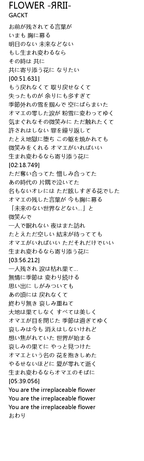 | [05:43.889] | You are the irreplaceable flower |