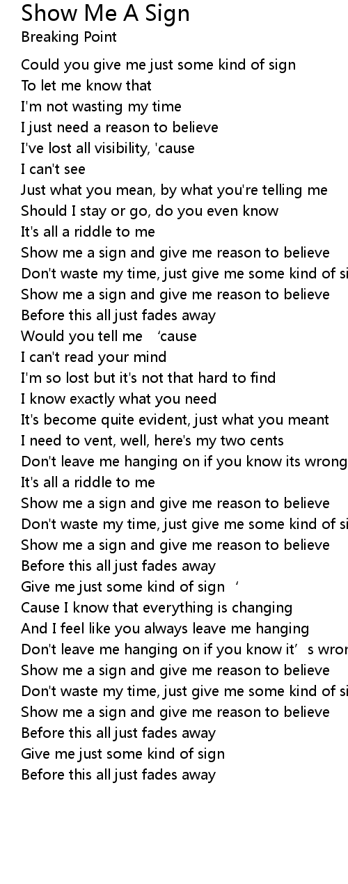 | Show me a sign and give me reason to believe | |