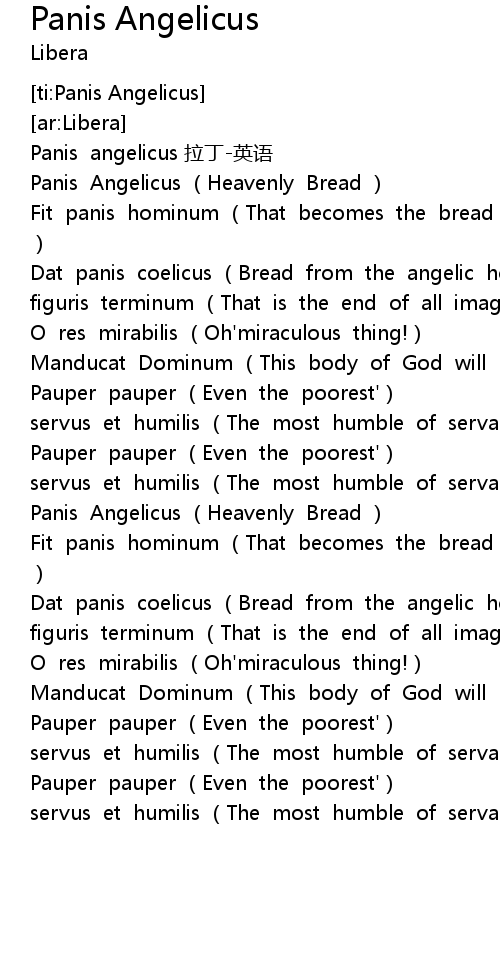 | [00:04.56] | Panis angelicus 拉丁-英语 |