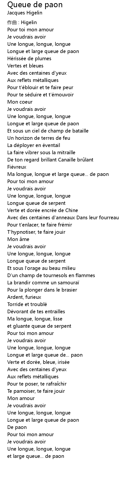 | Song | Queue de paon |