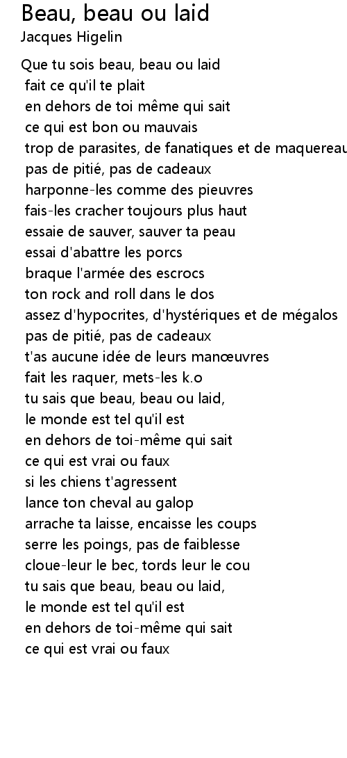 | Song | Beau, beau ou laid |
