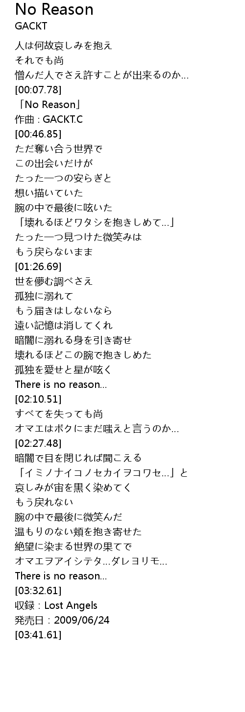 | [01:12.90] | 「壊れるほどワタシを抱きしめて…」 |