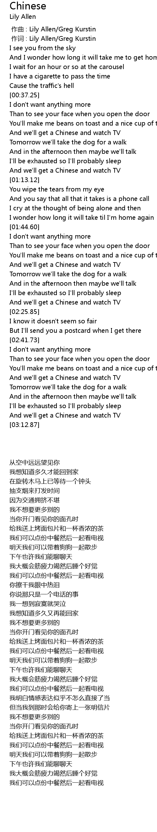 | [01:58.47] | And we' ll get a Chinese and watch TV |