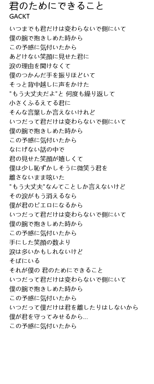 | Song | 君のためにできること |