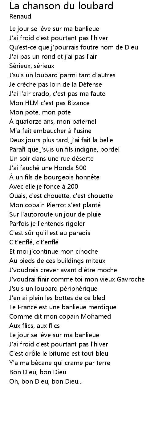 | J'voudrai finir comme toi mon vieux Gavroche | |