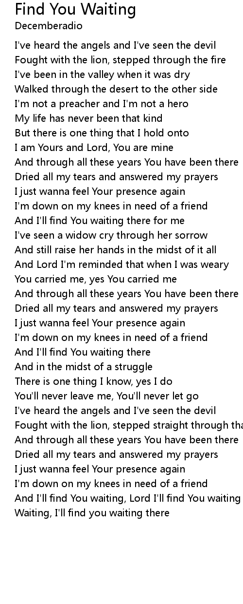 And I'll find You waiting, Lord I'll find You waiting here for me |