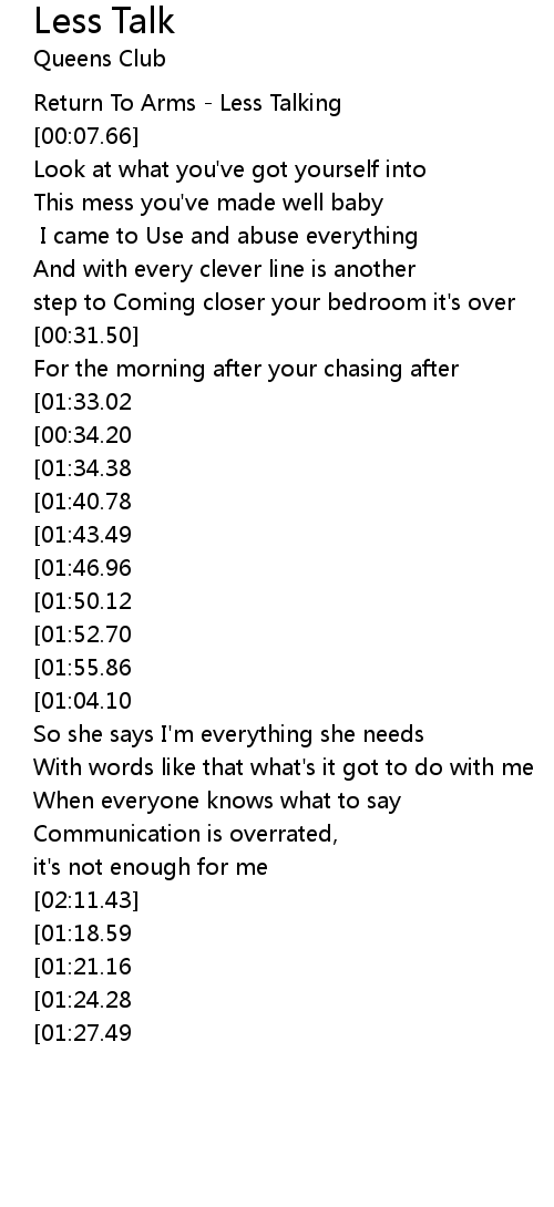 [00:00.98] Return To Arms - Less Talking