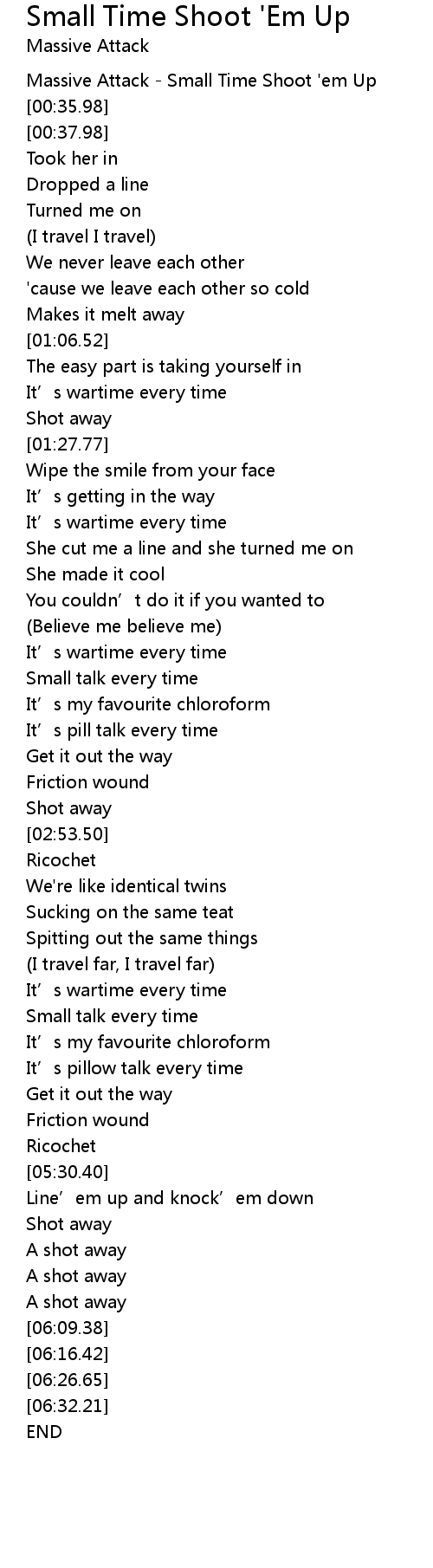 | [00:00.00] | Massive Attack Small Time Shoot ' em Up |