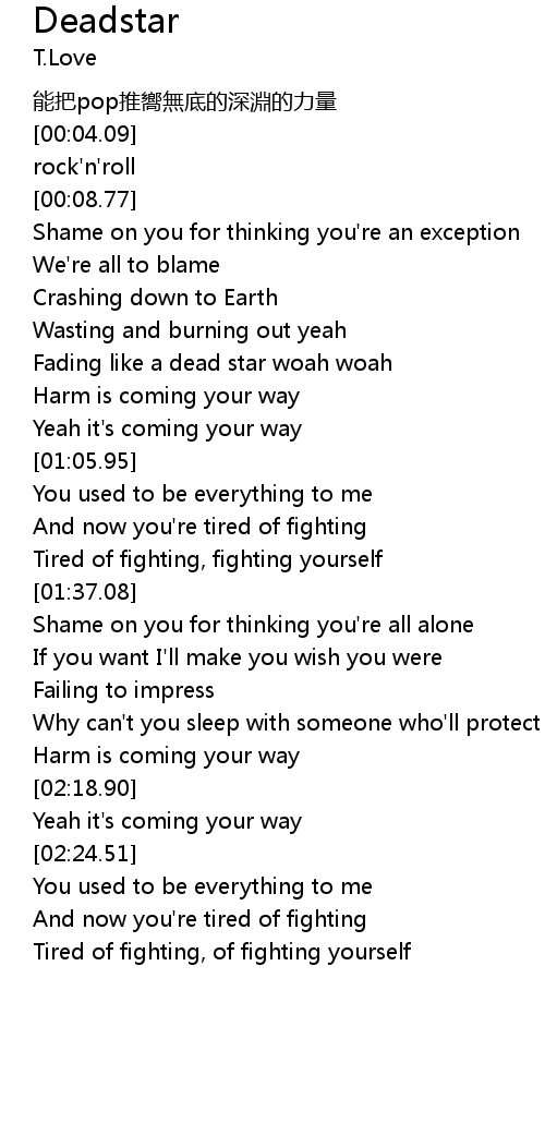 | [02:37.53] | Tired of fighting, of fighting yourself |