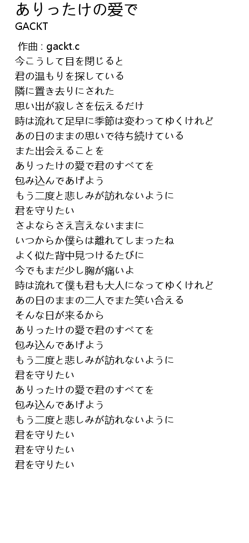 | [02:50.55] | ありったけの愛で君のすべてを |