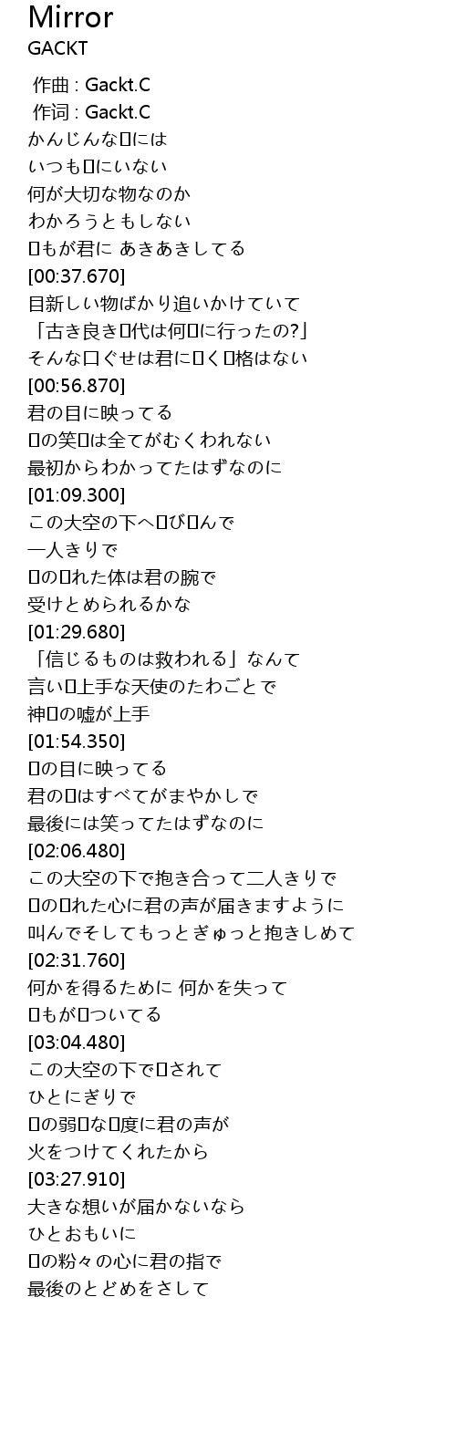 | [00:00.00] | zuò qǔ : Gackt. C |