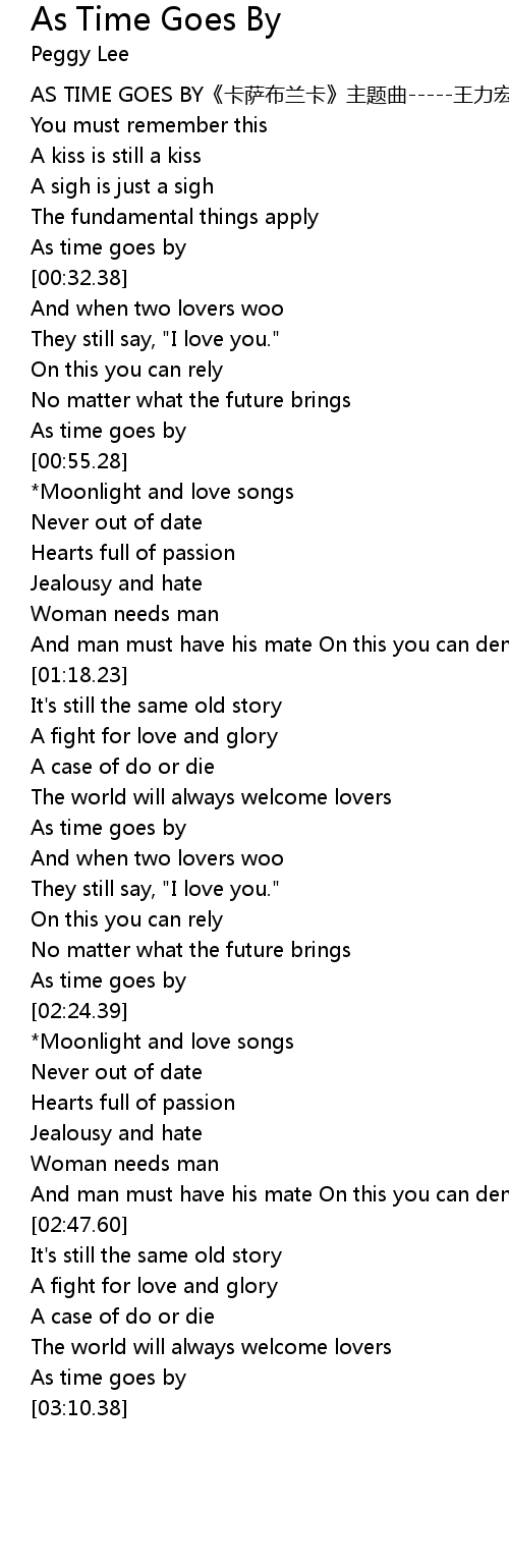 | [00:03.97] | AS TIME GOES BY kǎ sà bù lán kǎ zhǔ tí qū wáng lì hóng |