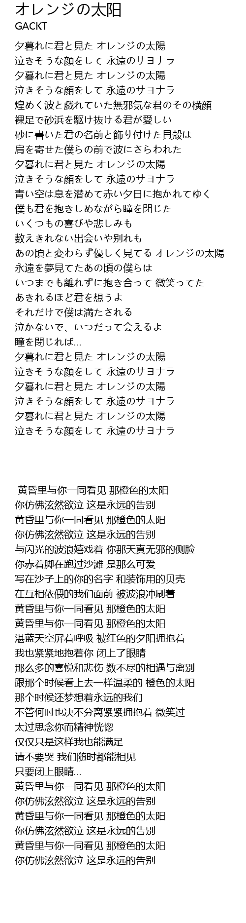 | [02:44.76] | 夕暮れに君と見た オレンジの太陽 |