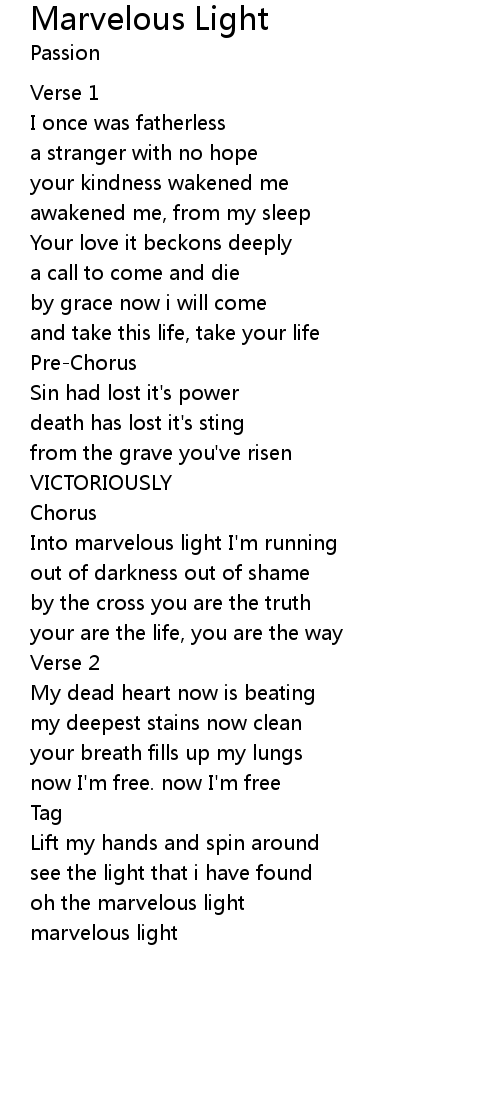 Into marvelous light I'm running |