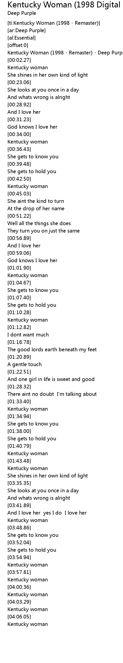 [ti:Kentucky Woman (1998 - Remaster)] |