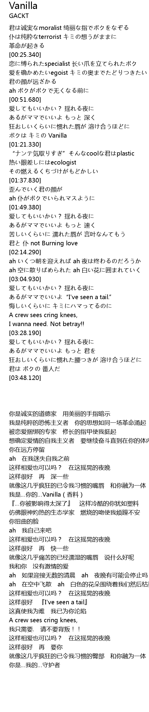 | [01:13.830] | ボクは キミの Vanilla |