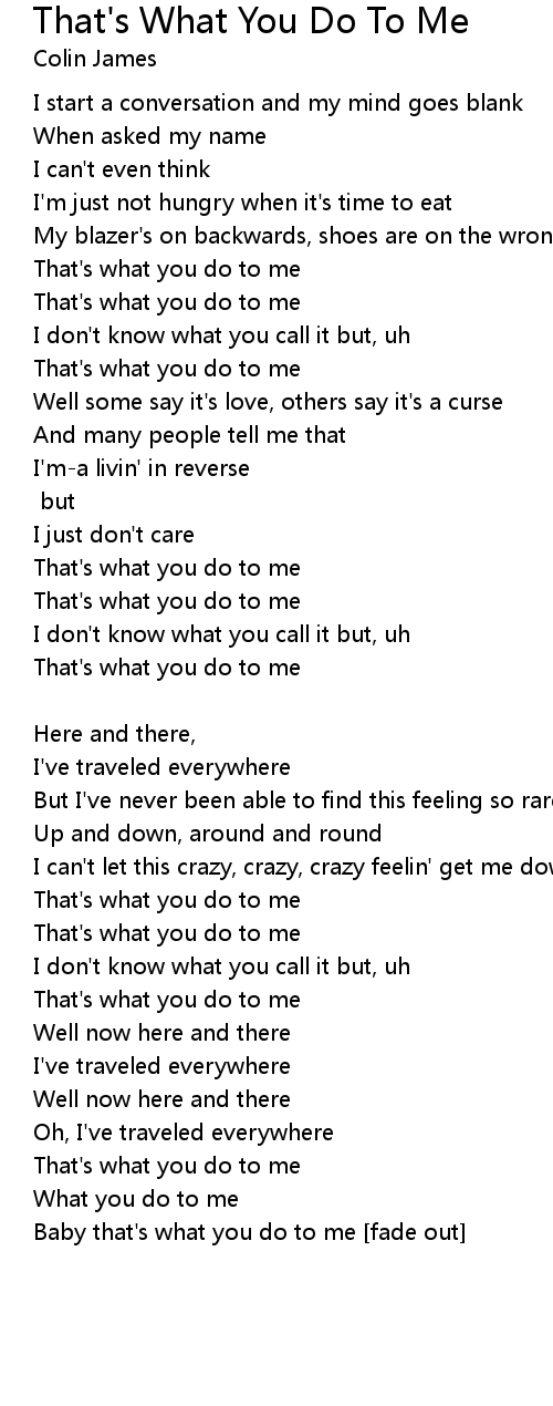 Baby that's what you do to me [fade out] |