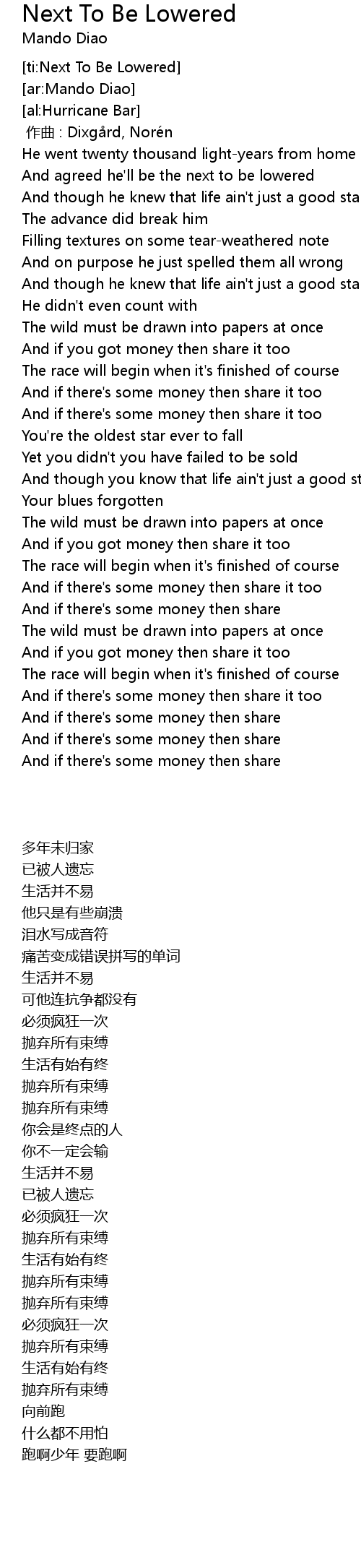 | [02:02.52] | And if there' s some money then share it too |