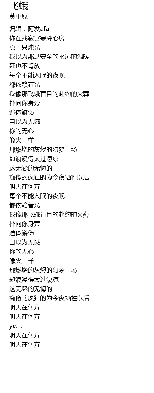 | [02:14.97] | 我像那飞蛾盲目的赴约的火葬 |