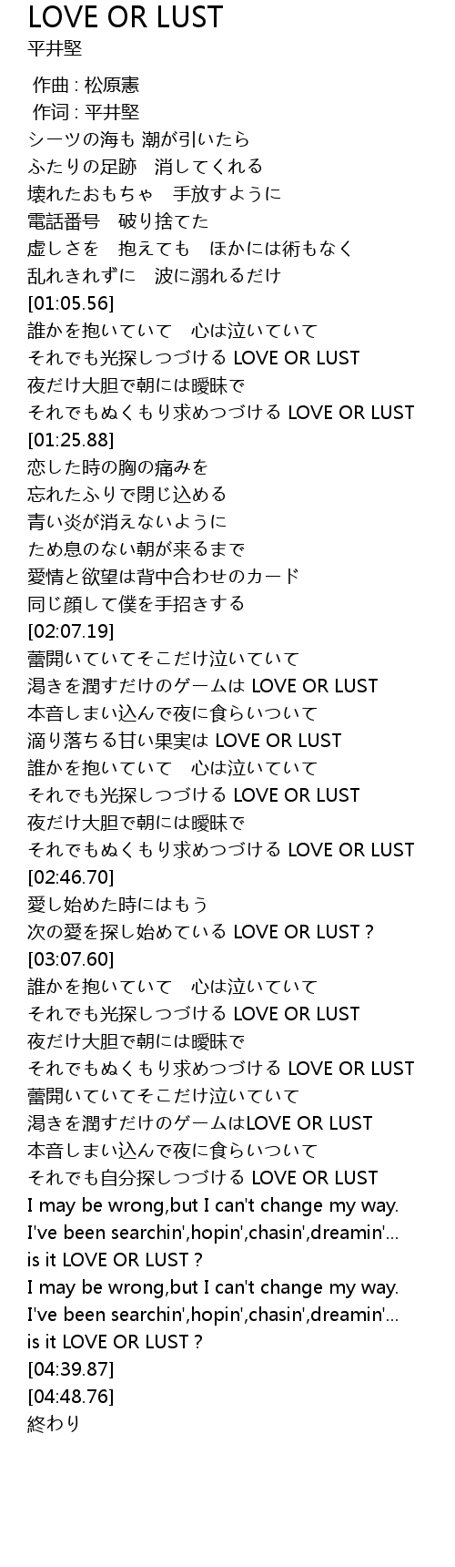 | [04:36.68] | is it LOVE OR LUST? |