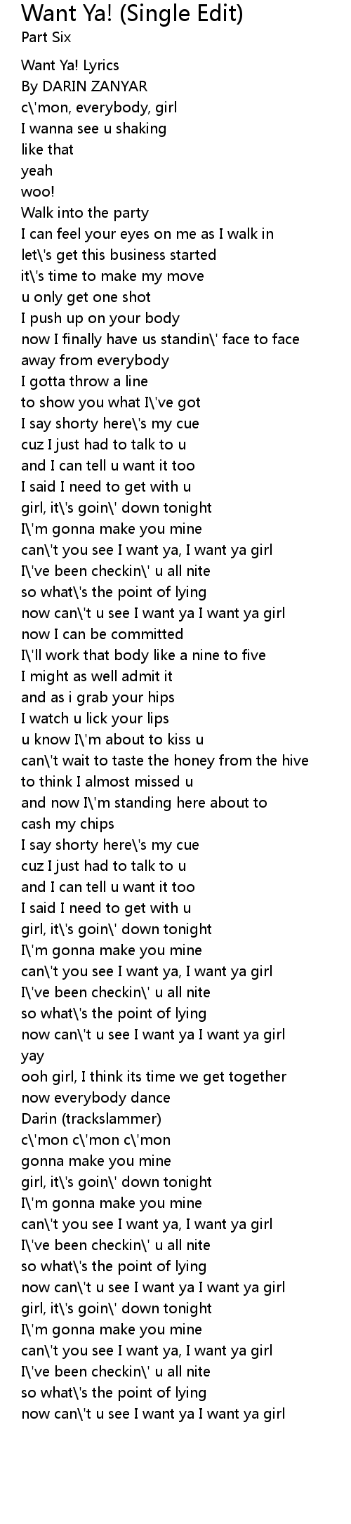 | [00:00.66] | Want Ya! Lyrics |