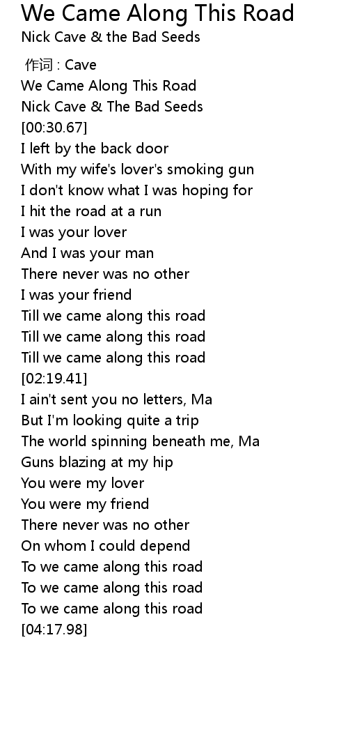 | [00:20.85] | Nick Cave & The Bad Seeds |
