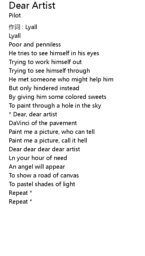 | Dear, dear artist | |