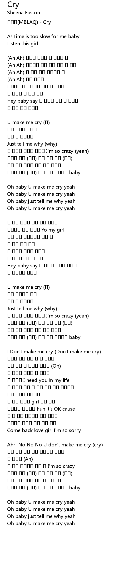 Oh baby U make me cry yeah