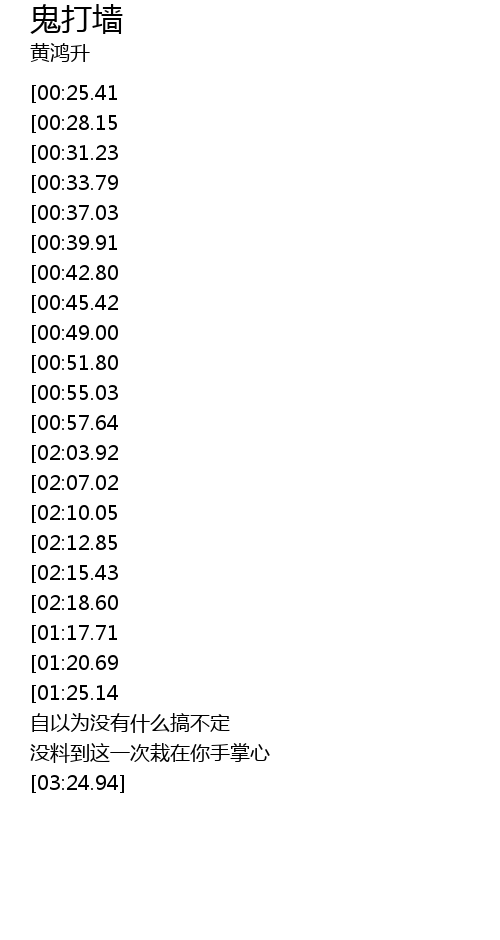 | [02:59.56][02:03.92][01:00.02] | 鬼打墙的越打越强的我的心脏 |