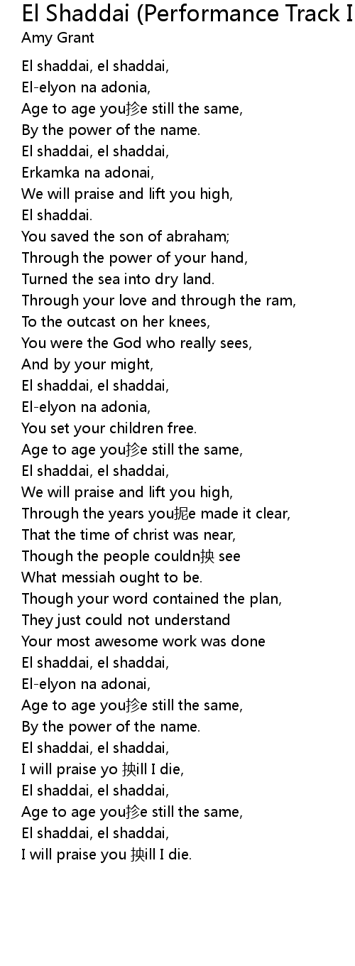 | Song | El Shaddai (Performance Track In Key Of C With Background Vocals) |