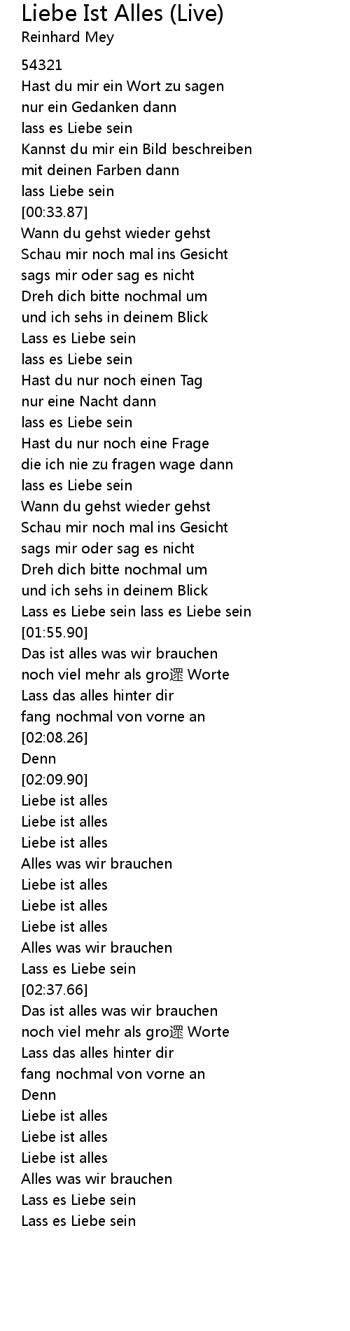 | [01:47.21] | Lass es Liebe sein lass es Liebe sein |