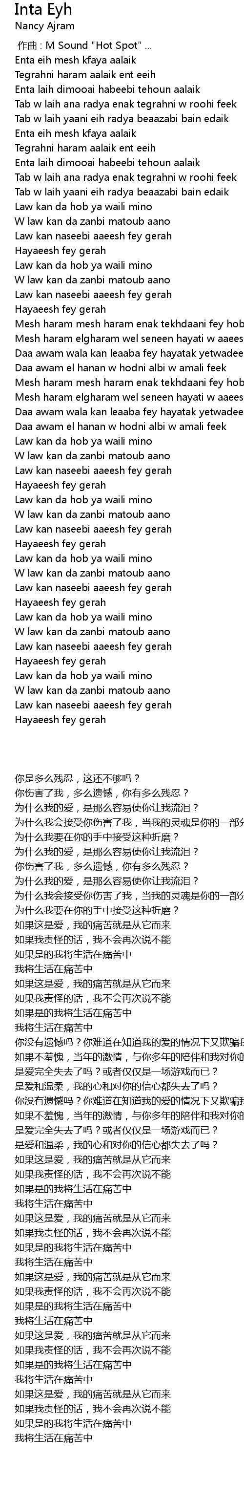 | [00:17.25] | Enta eih mesh kfaya aalaik |