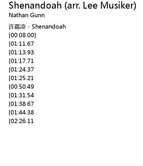 | [00:02.00] | 许嘉凌 - Shenandoah |