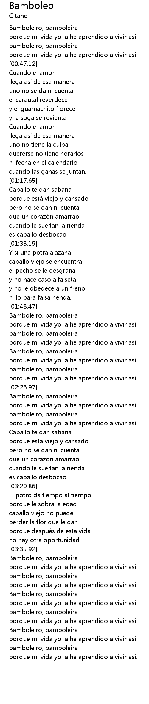 | [03:37.89] | Bamboleiro, bamboleira |