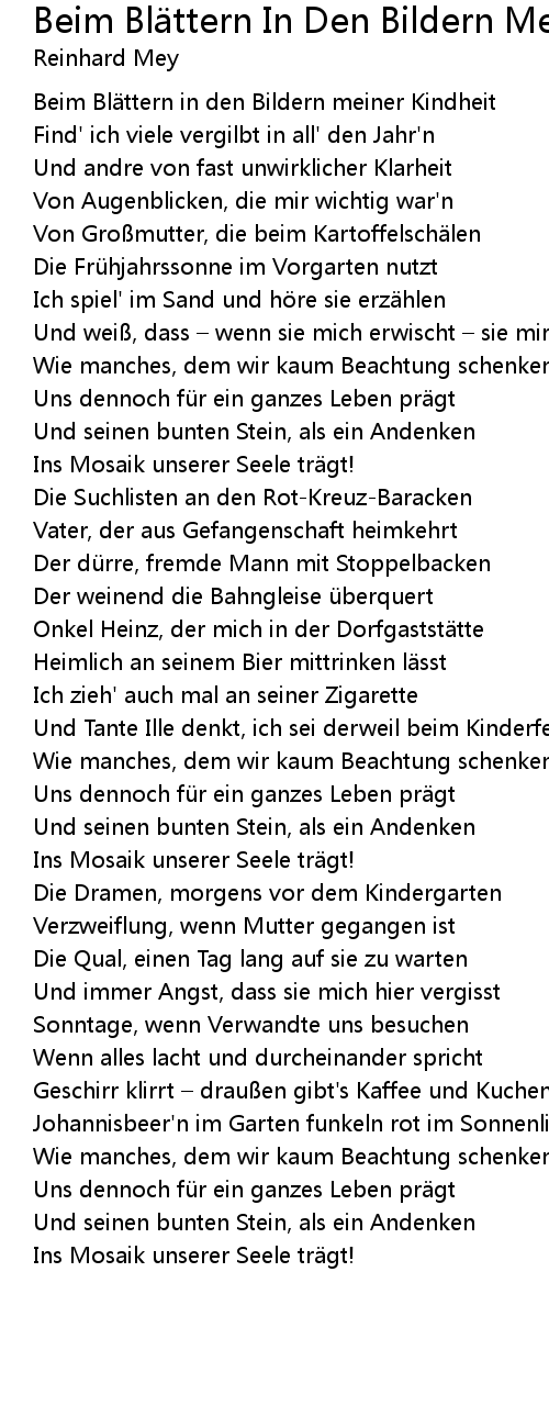 | Song | Beim Blättern In Den Bildern Meiner Kindheit |