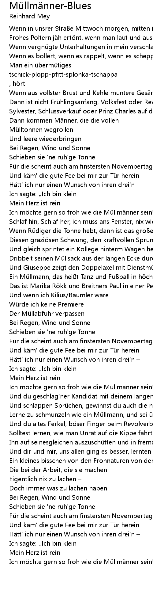 | Ich möchte gern so froh wie die Müllmänner sein!“ |