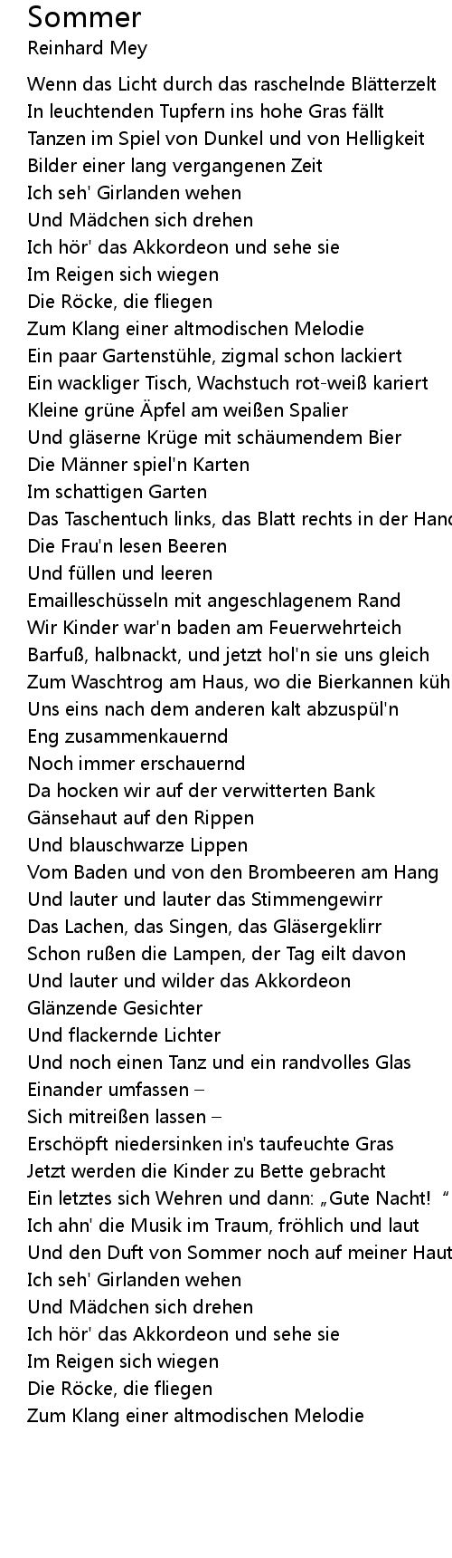 | Und den Duft von Sommer noch auf meiner Haut | |