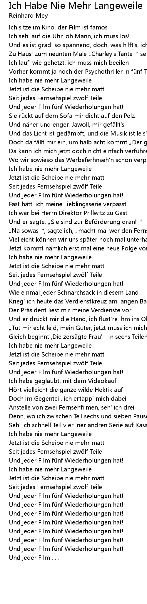 | Song | Ich Habe Nie Mehr Langeweile |