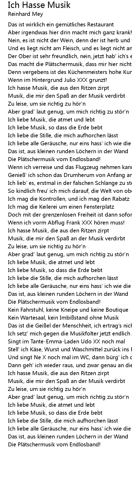 | Song | Ich Hasse Musik |