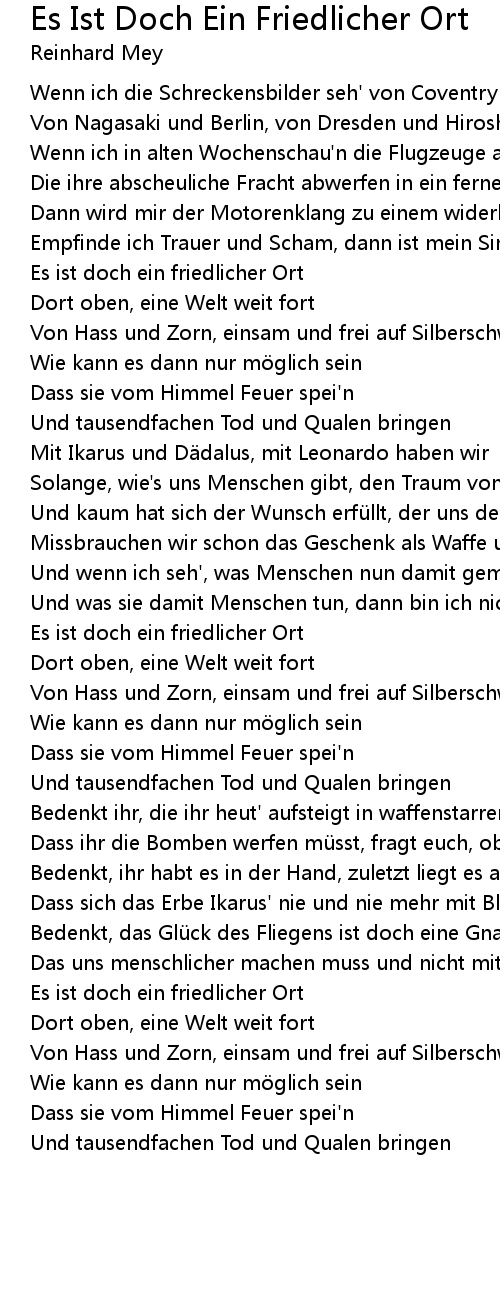 | Song | Es Ist Doch Ein Friedlicher Ort |