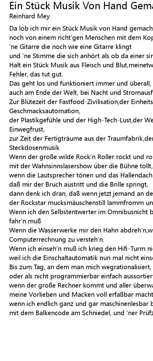 Ein Stü ck Musik Von Hand Gemacht Lyrics
