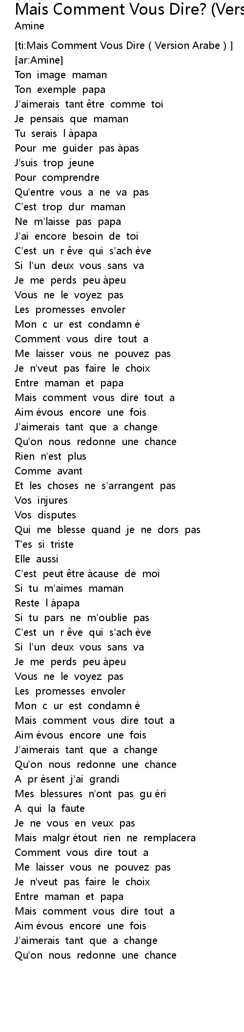 | [ti:Mais Comment Vous Dire(Version Arabe)] | |