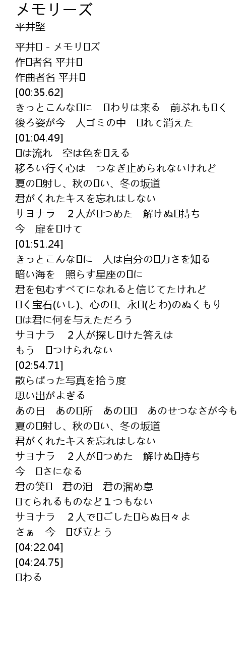 | [03:40.27] | サヨナラ 2人が�つめた 解けぬ�持ち |